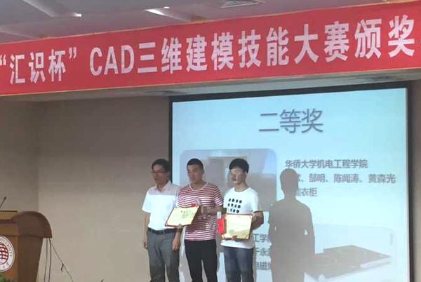 10月25日下午,福建省第七届汇识杯CAD建模大赛颁奖典礼在beat365厦门校区G101举行。本届汇识杯由福建省工程图学学会、厦门大学嘉庚学院、福建工程学院材料科学与工程学院团委主办,厦门大学嘉庚学院CAD协会、福建工程学院承办,beat365唯一官网机电及自动化学院协办,经过专家评审,共有12组作品获奖。机电学院2012级本科生陈常、陈闻涛、黄森光,2013级本科生郜明科创作品《智能衣柜》获得二等奖。