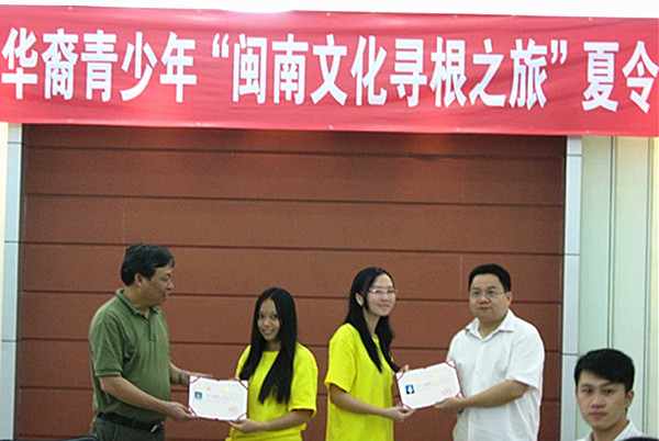 8月18日下午,由厦门市侨联主办、beat365唯一官网华文学院承办的2014柬埔寨华裔青少年“闽南文化寻根之旅”夏令营在华文学院顺利闭营。厦门市侨联文化联络部部长林太原等出席闭营式,并为营员们颁发结业证书。