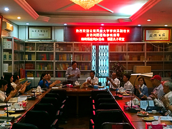 7月6日下午,以李炳泽副校长为首的云南民族大学代表团到访缅甸福星孔子课堂和缅甸福建同乡总会。福星孔子课堂缅方理事长吕振膑、董事长苏一新、中方院长罗建平、闽籍侨胞代表,以及福星孔子课堂总部全体教师参加欢迎座谈会。