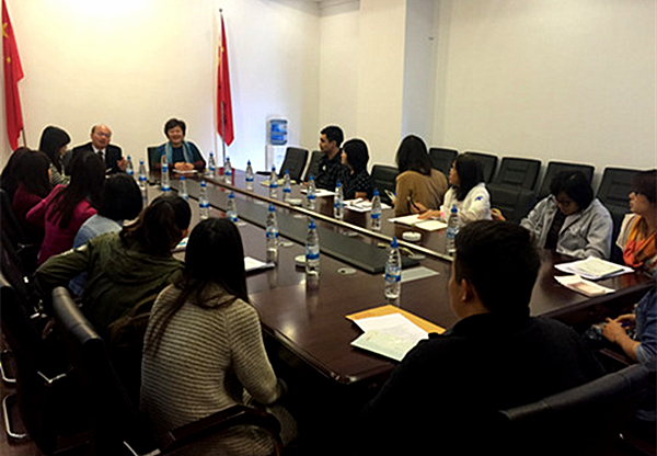 仪式后,李晓梅、李善邦还与2014级昆明境外研究生班学员举行了座谈会。