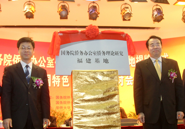 国务院侨办副主任许又声(右)和厦门市委常委、副市长康涛共同为基地揭牌