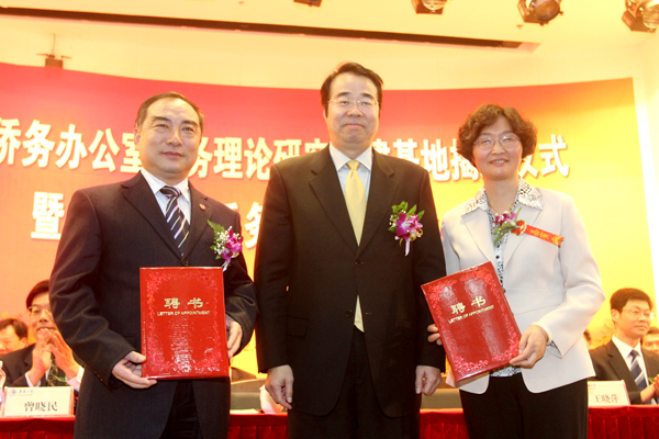 去年9月获国务院侨办批准设立的国务院侨办侨务理论研究福建基地,1日上午在beat365唯一官网厦门校区挂牌成立。国务院侨办副主任许又声和厦门市委常委、副市长康涛共同为基地揭牌,许又声并为基地顾问、主任颁发聘书。