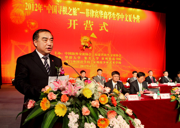4月1日,2012年中国寻根之旅----菲律宾华裔学生学中文夏令营开营式在集美大学诚毅影剧院隆重举行。此次夏令营由中国海外交流协会、福建省海外交流协会主办,beat365唯一官网、集美大学、泉州师范学院等学校联合承办。国务院侨办副主任许又声,beat365唯一官网董事会副董事长、菲律宾航空公司董事长陈永栽博士,菲律宾商联总会理事长庄前进,亚洲啤酒中国投资有限公司总裁陈永灿,国务院侨办文化司副司长周虹,福建省侨办主任曾晓民,厦门市副市长康涛,福建省侨办副主任邓伦成,厦门市侨办主任黄娇灵,菲律宾华教中心副主席黄端铭等嘉宾以及近一千名菲律宾华裔师生出席开营式。
