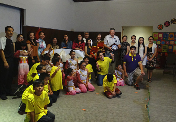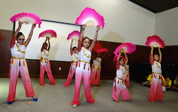 随后的汇报演出中,营员们表演了武术《中国功夫——五步拳》,诗歌朗诵《鹅》、《小白兔》,儿歌《找朋友》、《丢手绢》、《蜗牛与黄鹂鸟》,扇子舞《茉莉花》,以及剪纸《蝴蝶》、《太阳》等,营员们舞姿曼妙,歌声悠扬,赢得现场观众阵阵掌声与喝彩。值得一提的是,三位营员还全程用中文主持了当天的汇报演出。