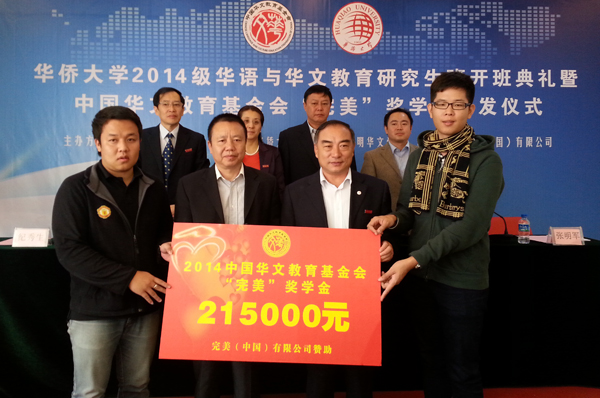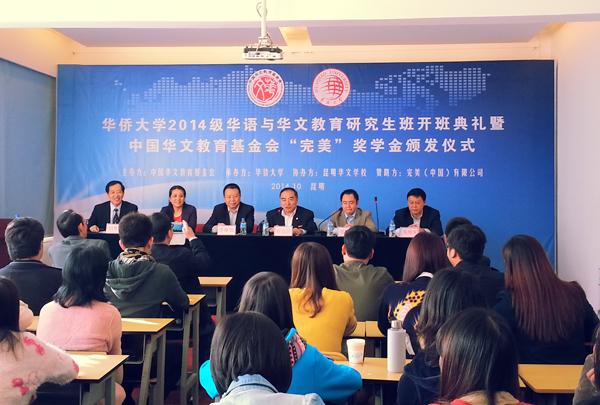 10月22日,beat3652014级华语与华文教育研究生班开班典礼暨中国华文教育基金会完美奖学金颁发仪式在昆明举行。本届研究生班共招生44名,主要来自泰国、缅甸、越南等国家,基本都为从事华文教育事业的华校教师。此次有35名学生获得中国华文教育基金会完美奖学金,奖励总金额达21.5万元。