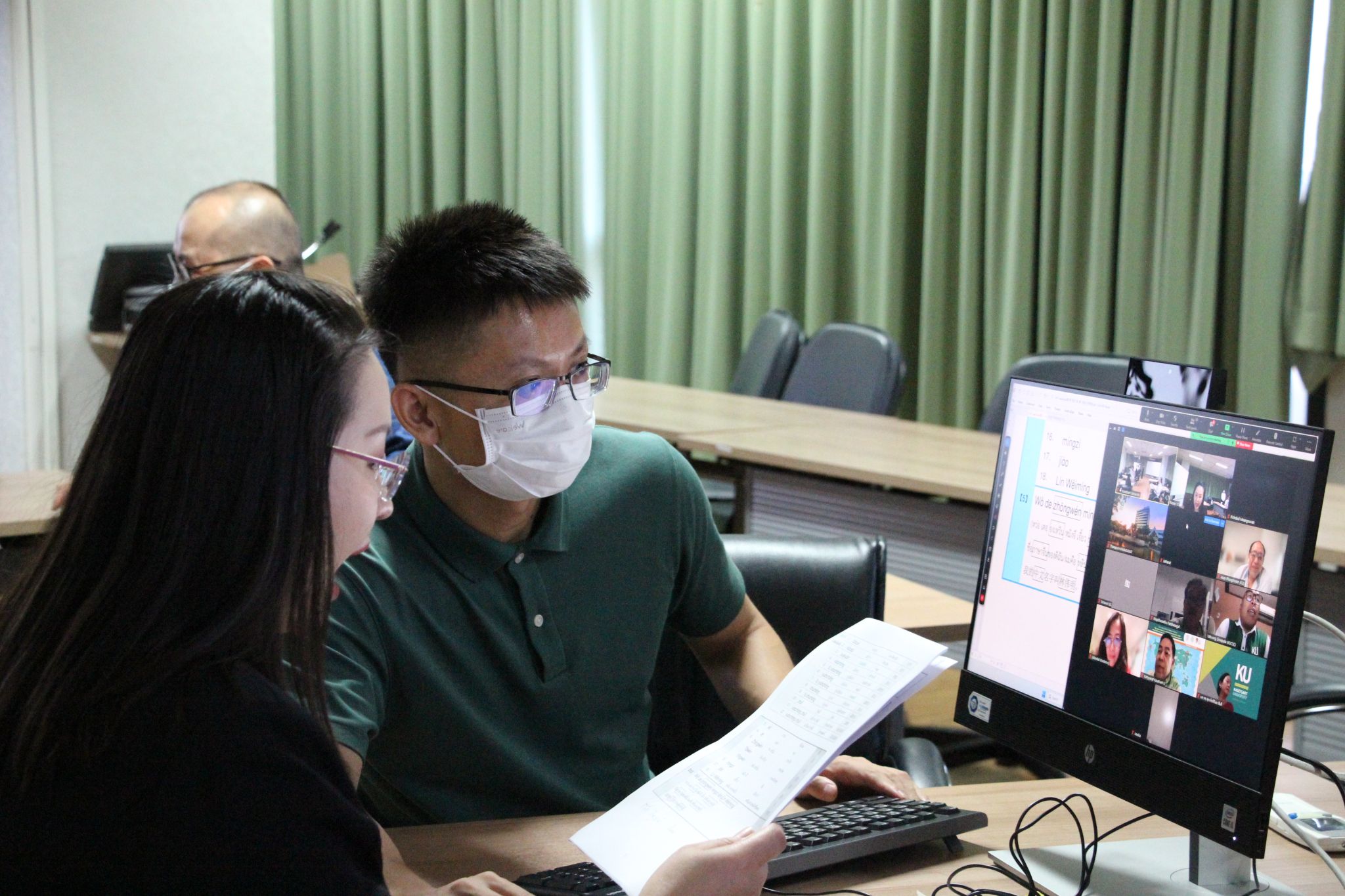 培训班由农大孔院中方院长高惠敏、泰方院长陈玉琳、公派教师张明喜组成的专业教师团队进行合作授课。首次课程以自我介绍为主题,主讲教师通过示范讲解,引导学员进行口语练习,积极开展云对话。