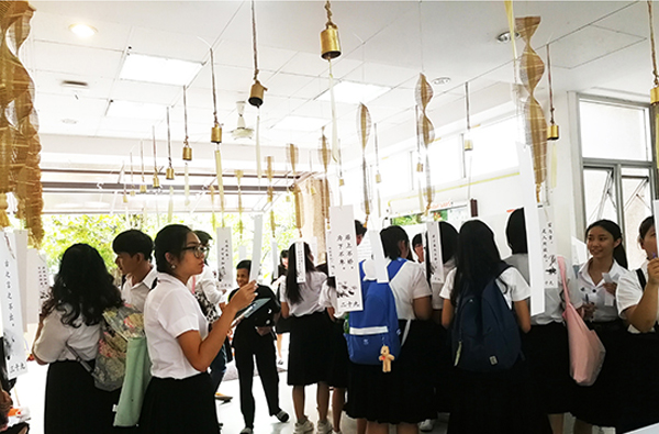 活动还独创以“《论语》灯谜”的形式,展现古代圣贤的智慧,把中国古代文化精髓与泰语结合起来,让参与者乐在其中。风铃清脆悦耳,竹卷旋转不停,墨香沁人心脾,徜徉在论语智慧中,众多学生跃跃欲试,大家猜灯谜、学《论语》,很多同学表示非常喜欢这种可以学、可以玩、可以和大家一起其乐融融而又有意义的活动,希望农业大学孔子学院举办更多此类活动。