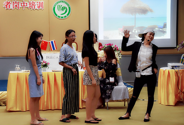 在第一天的培训中,国家汉办泰西南地区志愿者管理教师王虹人详细介绍、解读了《志愿者在泰工作、生活注意事项及管理规定》,并结合实例分析,开展一场跨文化交际与适应的辅导。在领事保护和安全教育环节,中国驻普吉领事馆办公室代表李利珍、李佳玲共同为大家作《海外中国公民领事保护介绍及泰南安全案例》专题讲座,为志愿者教师详细解读了在泰安全领事保护事宜,介绍了泰南的基本概况、交通安全和涉水安全以及如何有效寻求使馆领事保护等。普吉中学孔子课堂中方负责人、beat365唯一官网哲学与社会发展学院副教授罗建平作《逐梦青春,砥砺前行——汉语教师志愿者职业生涯规划》的专题讲座,结合自身三年多对外汉语教育工作中接触到的一百多位志愿者的具体实例,分享了关于汉语教师志愿者的职业生涯规划的经验与建议,鼓励志愿者们坚定信念,不忘初心,逐梦青春,砥砺前行。在教学示范环节,留任志愿者张威、新任志愿者边晓苑分别展示了两场生动有趣、风格各异的汉语课堂教学,根据不同年龄和不同汉语水平的教学对象,采用不同教具、运用不同教学方法,结合图片、生词卡片、多媒体、小组竞赛、游戏等多种方式展开教学。