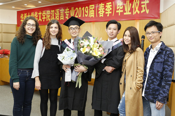 12月18日下午,华文学院在龙舟池校区学术报告厅举行汉语言系2019届(春季)留学生毕业典礼。华文学院副院长沈玲、邹琍琪,陈旋波教授、郭中副教授,教学办公室、招生办公室、汉语言系负责人,以及来自泰国、印尼等国家约30名学生家长参加了毕业典礼。