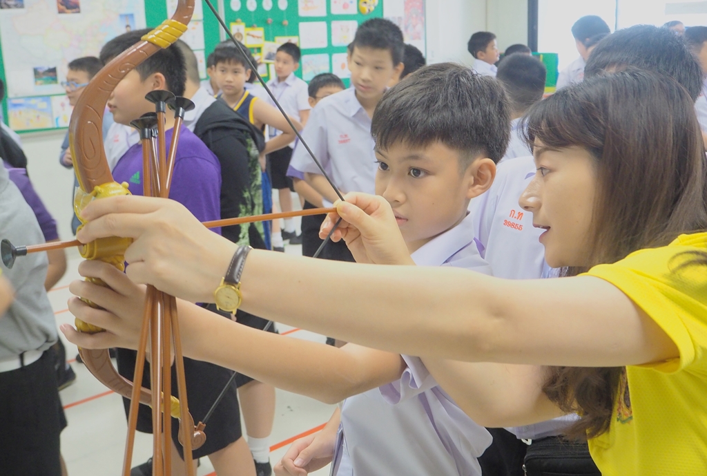 12月13日,泰国农业大学孔子学院下设的曼谷基督教学校(Bangkok Christian College,简称BCC)孔子课堂举办了以“百发百中,吸盘射箭”为主题的汉语乐园活动。本次活动主要面向BCC学校的小学生。