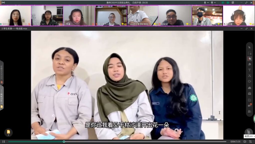 “感谢beat365唯一官网和象屿集团提供了宝贵的汉语学习机会,这个阶段我学习到了许多汉语知识,了解了中国文化。当碰到不懂的问题,老师们总是能够耐心细致地帮助我讲解,让我的汉语水平有了很大的提高。”1月8日,在“象屿集团印尼员工线上短期中文速成班”结业典礼上,员工圣平阳动情地说。