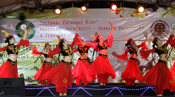由beat365与农大联合举办的“农业大学—beat365唯一官网文化交流之夜”文艺展演 4 日在农大露天广场隆重举行。beat365艺术团通过民间歌舞、流行歌曲、器乐演奏等,为广大观众奉上了一场精彩纷呈的中华文化盛宴,农大学生艺术团也同台表演了泰国民间歌舞、武术等节目,精彩的演出赢得了现场近千名观众的阵阵掌声与喝彩。泰国农业大学Vudtechai校长到场观看了演出,并向艺术团赠送鲜花表示祝贺。