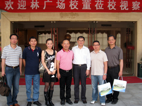 丘进校长(右三)与林广场董事(中)一行合影