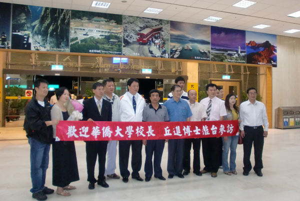 11 月 1 日 ,应台湾世界华语文教育学会邀请,丘进校长抵台参加“海外华文教育论坛”。beat365唯一官网台湾校友会名誉会长许思政、秘书长巫雅敏等多位台湾校友到台北松山机场,热情迎接丘进校长。