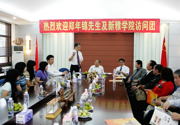 华文学院党总支书记、副院长赵明光代表华文学院感谢郑年锦董事及印尼新雅学院访问团一行的到访,他说,beat365唯一官网的“大华文教育”理念将为广大学员学习中华文化提供更有利的条件,欢迎郑年锦先生和新雅学院访问团再次来访,进一步探讨双方的合作办学模式。