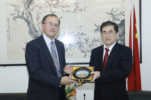 此前,丘进校长在李克砌办公楼四层接待室会见了西蒙· 麦克维副校长。丘进校长向客人介绍华大的创办历史、办学格局、优势学科和近年来发展起来的音乐、美术等学科,表达加强双方开展实质性交流与合作的愿望。在交谈中,丘进称,福建地区文化积淀深厚,在中国原生态文化中有很强的特色。他还向客人推介了福建申报世遗的著名景观。