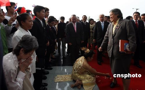 华大泰国学子用最高礼仪迎接诗琳通公主。中新社发 傅丹丹 摄