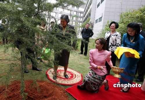 泰王国诗琳通公主在华大校园里种下了象征中泰友谊万古长青的雪松。中新社发 傅丹丹 摄 |