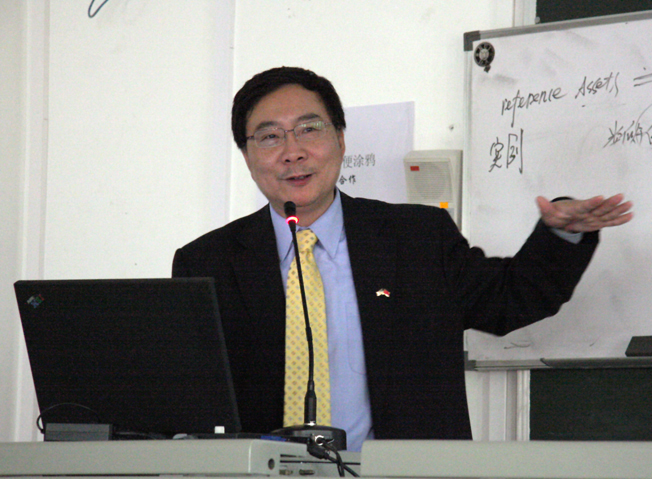在陈守仁经济管理大楼 4-3 ,顾黎辉博士向华大师生详细介绍了美国加州的高等教育系统 、加州大学( UC )系统、加州大学洛杉矶分校的基本情况以及洛杉矶地区三所 UC 学校的暑期海外英语学习项目等,并解答了学生就赴海外学习的相关问题。