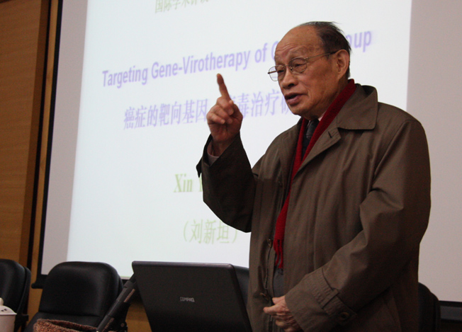 刘院士在“癌症的靶向基因——病毒治疗”新策略的报告中介绍了近年来癌症的治疗方法、治疗手段以及该策略目前的进展情况,并与现场师生进行交流。