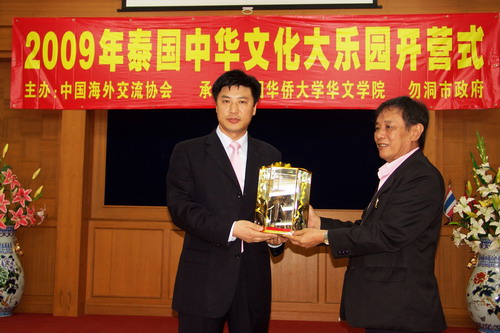 会后,华文学院赵明光书记与泰国勿洞市市长互赠纪念品,同时与到会的所有嘉宾、学员们合影留念。
