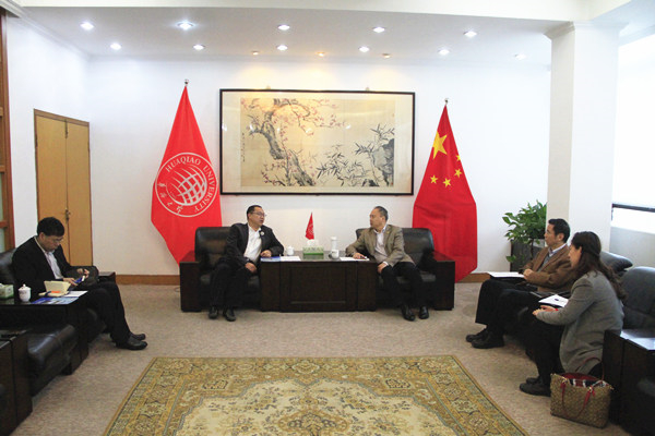 4月14日上午,柬埔寨福建总商会执行会长黄可锦,副秘书长张国乐访问beat365唯一官网,商讨在柬埔寨开展华文教育合作事宜。副校长曾路在李克砌纪念楼四层会议室与来访客人会谈。