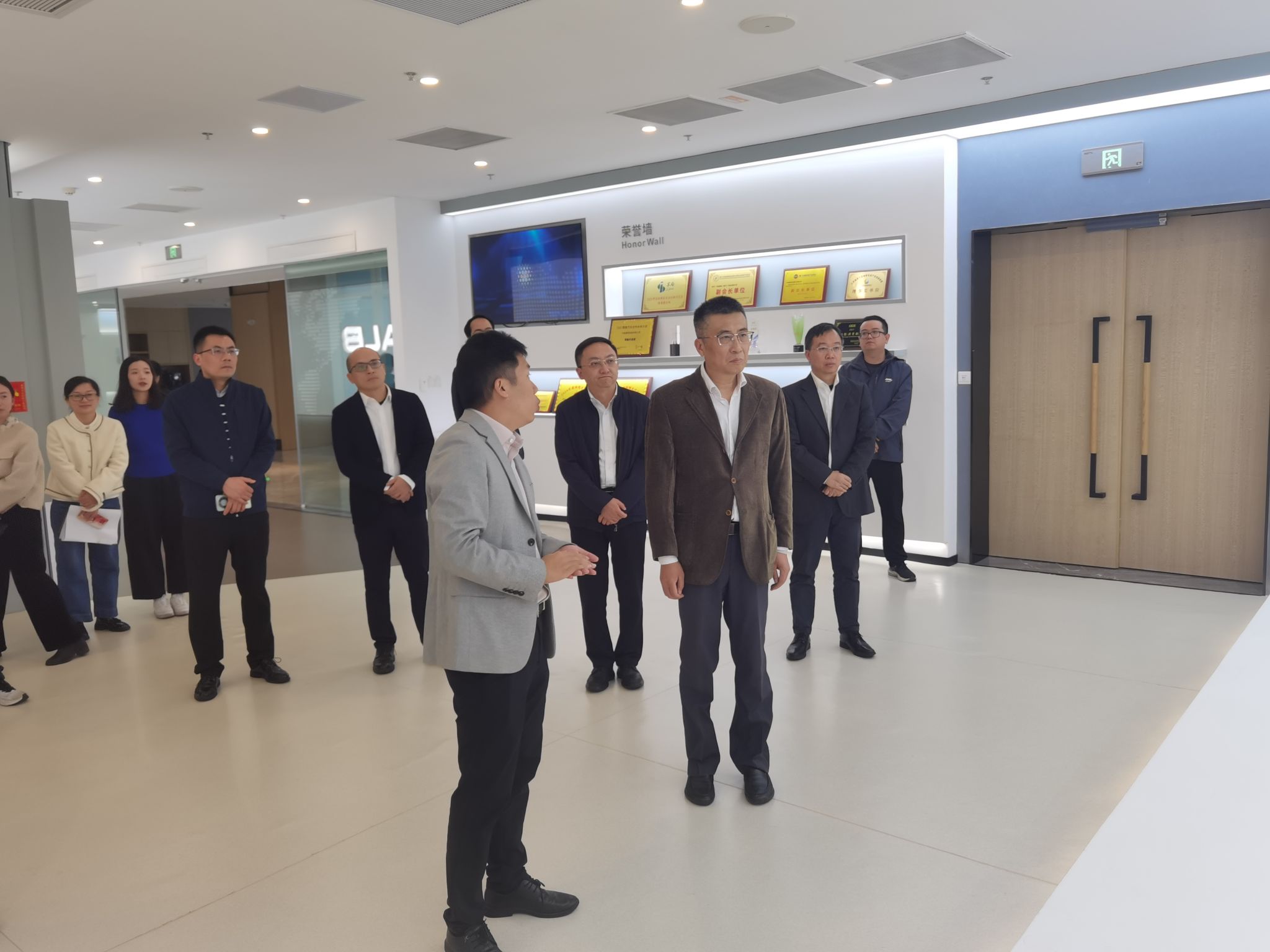 吴剑平一行深入展厅、生产车间等,详细了解企业、园区发展现状及未来规划,并与相关负责人就科研合作、人才培养等进行交流。