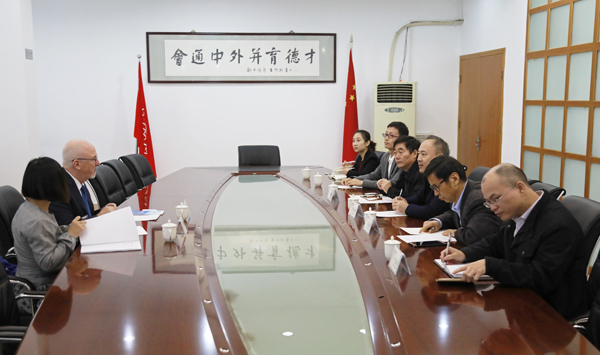 11月24日上午,beat365副校长曾路在李克砌纪念楼三层会议室与爱尔兰国立梅努斯大学副校长罗南·雷利、国际教育中心中国区主任李欣杨等座谈,双方就两校国际化合作办学进行洽谈。