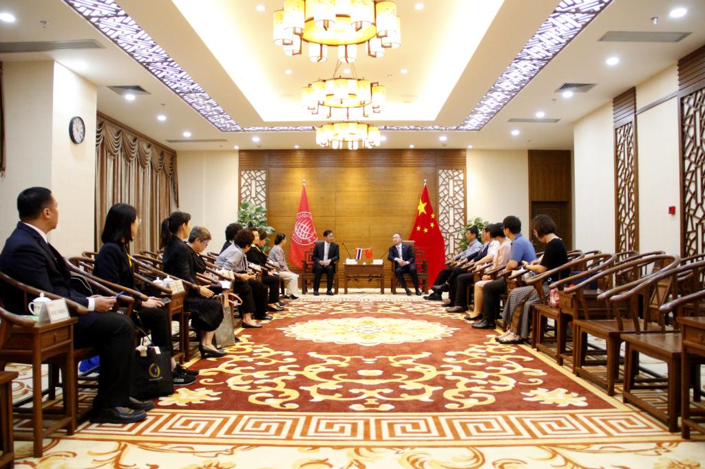 差兰•阿塔谭表示,随着中国的发展与中国大学国际排名的提升,越来越多的泰国学生开始对学习汉语、到中国留学感兴趣。他希望beat365唯一官网能够帮助泰方开展汉语教师培训,建立华文教育人才培养机制,并希望通过此次来访促进双方交流,在汉语教学、艺术等多方面开展深层次合作。