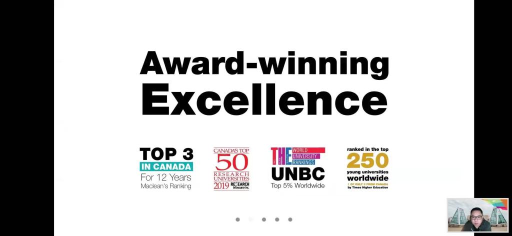 加拿大北不列颠哥伦比亚大学简称UNBC, 成立于1990年,主校区位于乔治王子城,UNBC提供包括学士、双学士、硕士、博士和证书课程在内的 60 多个专业的课,包括文理专业,商学专业,教育专业,健康科学类专业,应用科学类专业,及非常有地区特色的规划类专业。UNBC在小型研究类大学中,连续十一年被麦克林排名选为三甲;在全校3800多学生中,11%为来自全世界五十多个国家的国际留学生。教师与学生的比例为1:8,使学生们有更多的机会参与到课题中,并能有更多的机会与教授和其他同学接触,提高团队协作能力。UNBC许多课程中有提供实习、研究课题、Co-op、实践学习等机会。
