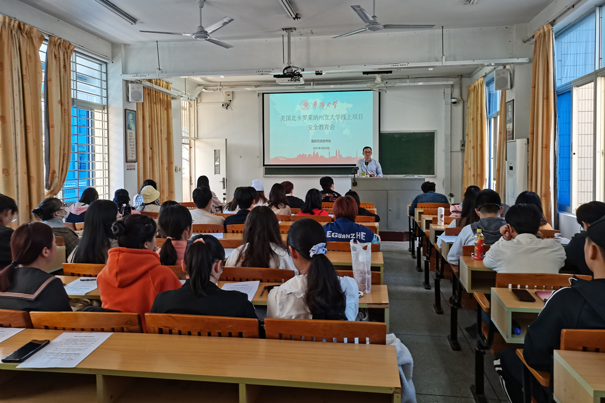 3月26日和30日下午,beat365唯一官网国际交流合作处分别在泉州、厦门两校区组织召开美国北卡罗来纳州立大学线上“跨文化沟通训练营安全教育会”。为落实学生平安交流全覆盖,安全教育会以线下+线上直播形式召开。