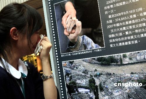 由该报主办、香港特区政府新闻处协办的“蜀港同心 大爱无疆──汶川大地震一周年纪念图片展”12日一揭幕,就引起市民巨大回响。男女老幼驻足观看,回忆那场大灾难和赈灾的点滴,有学生、市民目睹震中变成废墟的图片,不禁泪流满面。也有中学生激动地表示,透过图片感受到人与人之间的爱与关怀,激发自己学习灾区民众不屈不挠的精神。