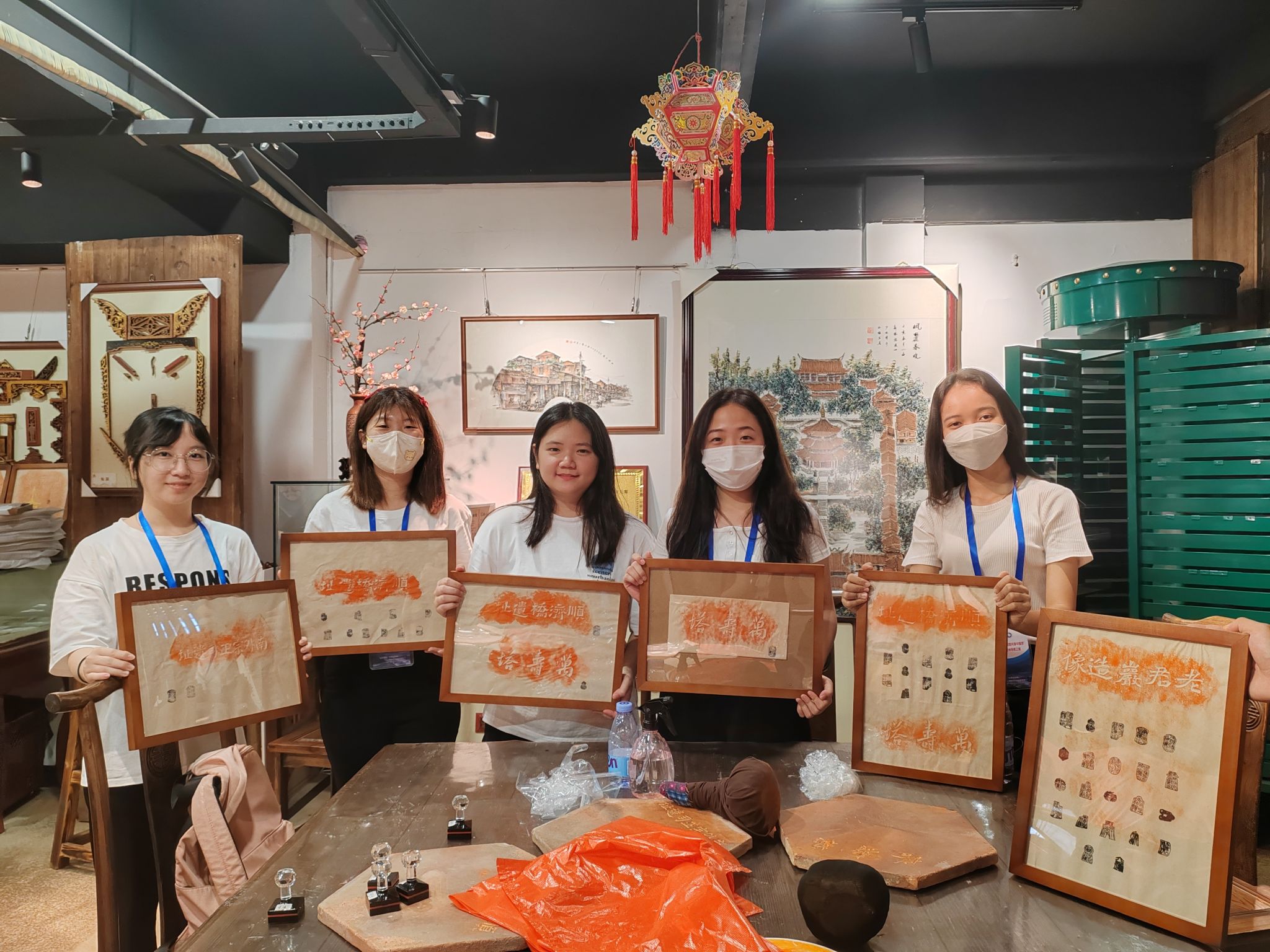 同学们沉浸式参观学习,认真欣赏闽台缘博物馆与侨批馆的文物,在不同单元部分内感受闽台之间的历史文化,直观清晰地了解祖国大陆人民与台湾同胞守望相助的历史事实,认识到自古以来,闽台同胞就在中华大地这片家园开发同工、血脉相亲、文脉相承、风俗相通。参观过后,同学们亲身参与手包润饼菜、欣赏香道表演、体验金苍绣等活动,还制作了泉州世遗22个地名拓印,沉浸式体验泉州的历史文化。活动中,师生观看了木偶戏表演,了解和体验空竹与簪花文化。