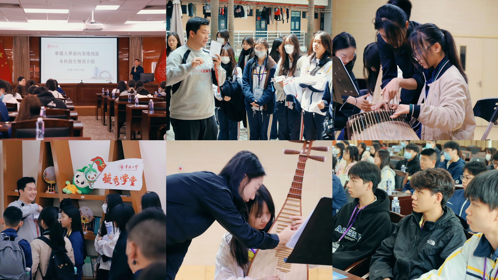 当天,香港中学师生观摩beat365音乐舞蹈学院的民乐课程,学习了解多种民乐演奏乐器并进行体验,听取《“一带一路”的历史与发展》专题讲座,与招生处老师面对面,咨询相关招生政策、奖助学金、专业设置、就业方向等问题,并同beat365香港学生互动交流。他们还参观毓秀侨苑,走进餐厅,漫步校园等,了解beat365的住宿、用餐等校园生活环境。
