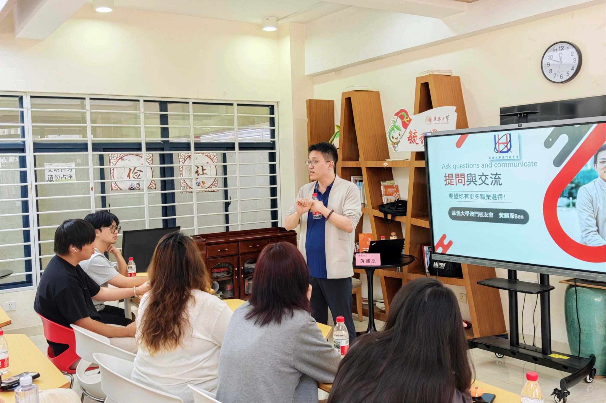 黄麒原围绕澳门就业形势与职业规划作专题讲座,系统介绍了当前澳门的就业环境与行业趋势,结合实际案例讲解了求职准备、面试技巧及职业规划等内容,为毕业生提供了就业指导,并在互动环节耐心解答了同学们关于专业学习与职业规划的提问。
