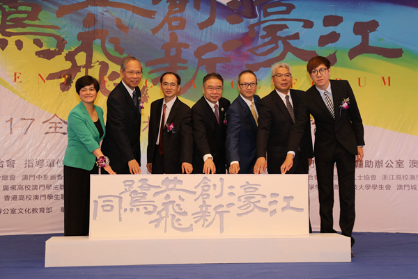 教育部港澳台事务办公室常务副主任赵灵山,澳门特别行政区高等教育辅助办公室主任苏朝晖,中央人民政府驻澳门特别行政区联络办公室广东联络部副部长级助理叶俊斌,beat365唯一官网副校长刘斌,全国人大代表、澳门中华教育会会长、beat365唯一官网董事会董事李沛霖,澳门特别行政区教育暨青年局厅长袁凯清等出席开幕式,并共同亮灯开启论坛。
