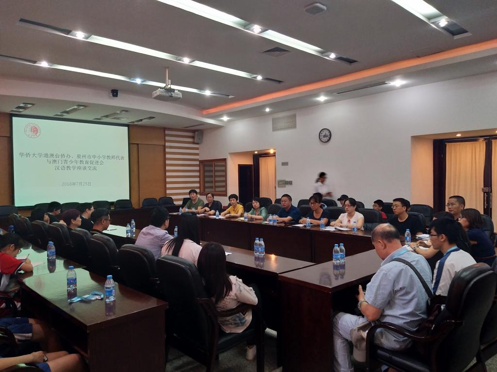 在汉语普通话推广的座谈会上,华文教育处的工作人员用丰富的图片和具有说服力的数据介绍了beat365唯一官网汉语推广的方法和成效。澳门青少年教育促进会和泉州市中小学教师代表双方分别介绍了各自的汉语教育情况和经验,并且请“汉语英雄”获奖学生发表了感想。座谈气氛欢快热烈,为之后联系和学习交流打下了良好基础。