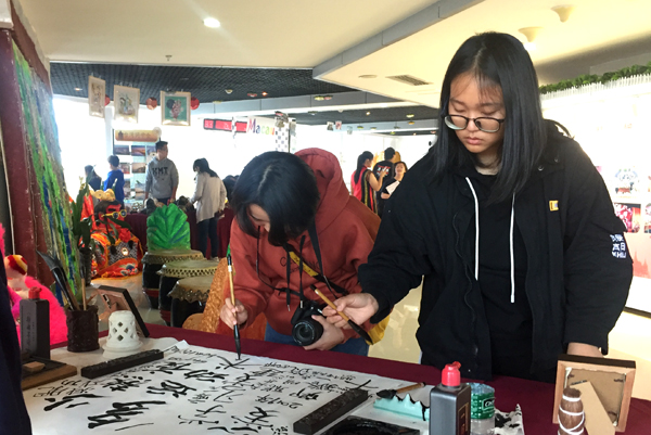 香港学生用手工制作的各类物品结构模型展示了他们在学校的学习所得;澳门学生用绘制的两张地图展现了澳门回归后发生的巨大变化,连接港澳展位的“港珠澳大桥”模型寓意“以侨为桥,架桥为侨”;台湾学生用独具特色的电音三太子表演引来了许多师生的互动合影。菲律宾、老挝、马来西亚、泰国、缅甸以及印度尼西亚等海丝沿线国家的留学生身着民族特色服饰,热情洋溢地向观展师生介绍当地的历史文化、习俗服饰、饮食文化以及在华园的所感所得,并邀请观展师生一同参与互动体验。