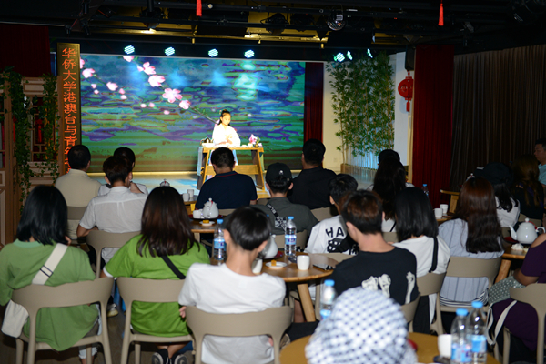 在三道行艺术馆,港澳台侨学生们品茶、闻香、看戏、听曲,并亲自体验、感受非物质文化遗产的魅力,现场一片欢声笑语,其乐融融。学生们还与青联代表们一起品月饼、话中秋,围绕“圆”的主题畅叙心情、共抒情怀。