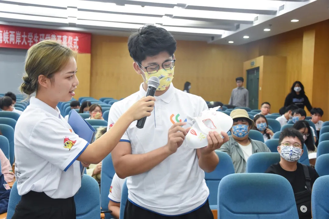 开场舞蹈《寄明月》,以富有国风意蕴的曲目引发了两岸大学生的情感共鸣。DIY面具互赠过程中,同学们将自己的心情与对活动的期待记录于笔尖,跃然于面具上,用互赠面具的方式传递信息,交流情感。在《相亲相爱》饱含热情的联唱歌声中,开营仪式圆满结束。接下来的五天时间里营员们将参加以“五缘”为主题的系列研学活动,在线上线下交融的研学中合作与竞争,不断收获知识与成长。