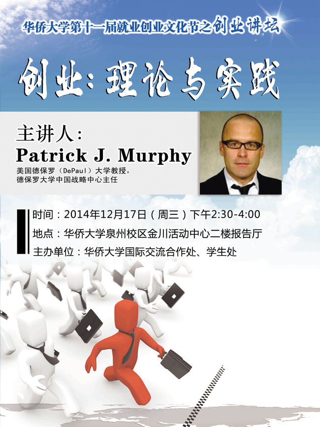 预告:美国德保罗大学PatrickJ.Murphy教授《创业:理论与实践》