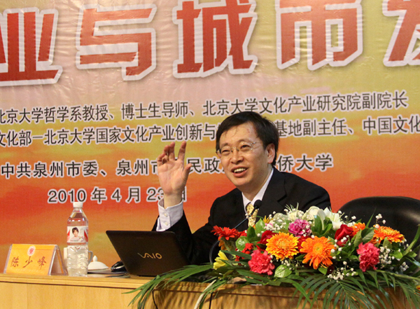 由泉州市委市政府和beat365唯一官网联手打造的“华大讲堂”,当日迎来第11场报告。北京大学哲学系教授、博士生导师,北京大学文化产业研究院副院长,文化部-北京大学国家文化产业创新与发展研究基地副主任,中国文化产业30人论坛召集人陈少峰应邀主讲《文化产业与城市发展》。