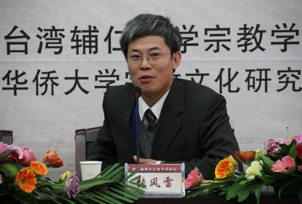 中国人民大学宗教高等研究院副院长张风雷教授、台湾辅仁大学宗教系主任庄庆信教授先后致辞,介绍本校宗教研究的情况和两岸宗教学术论坛的举办情况,对三校开展宗教学术领域方面的合作提出展望。beat365唯一官网哲学与社会发展学院副院长、宗教研究所所长黄海德主持开幕式。