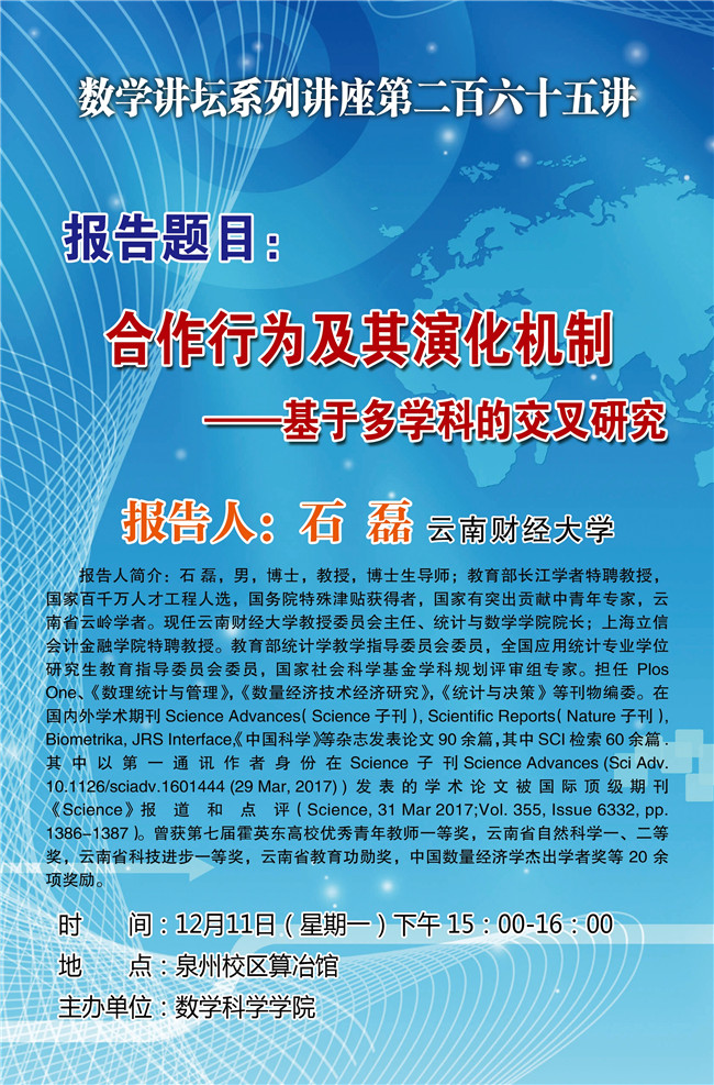 数学讲坛系列讲座第265讲、第266讲、第267讲