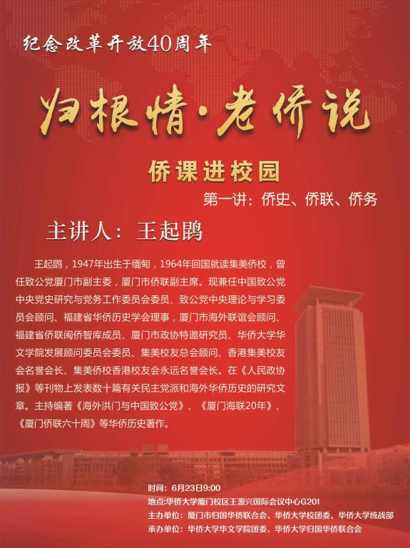 纪念改革开放40周年归根情·老侨说侨课进校园第一讲