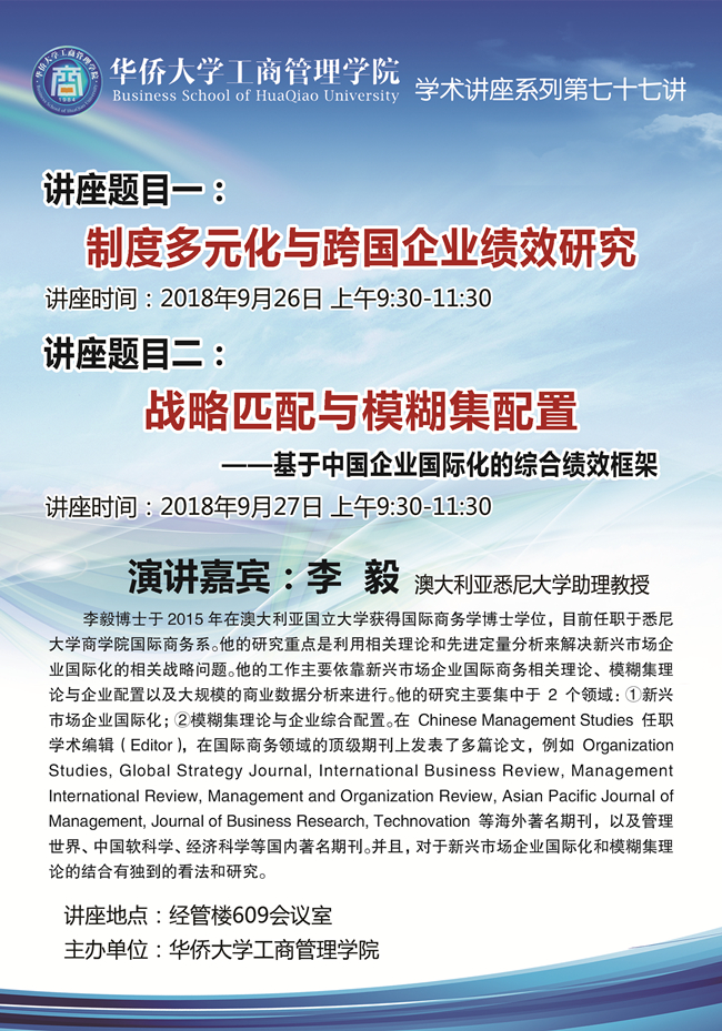 工商管理学院系列学术讲座第77讲