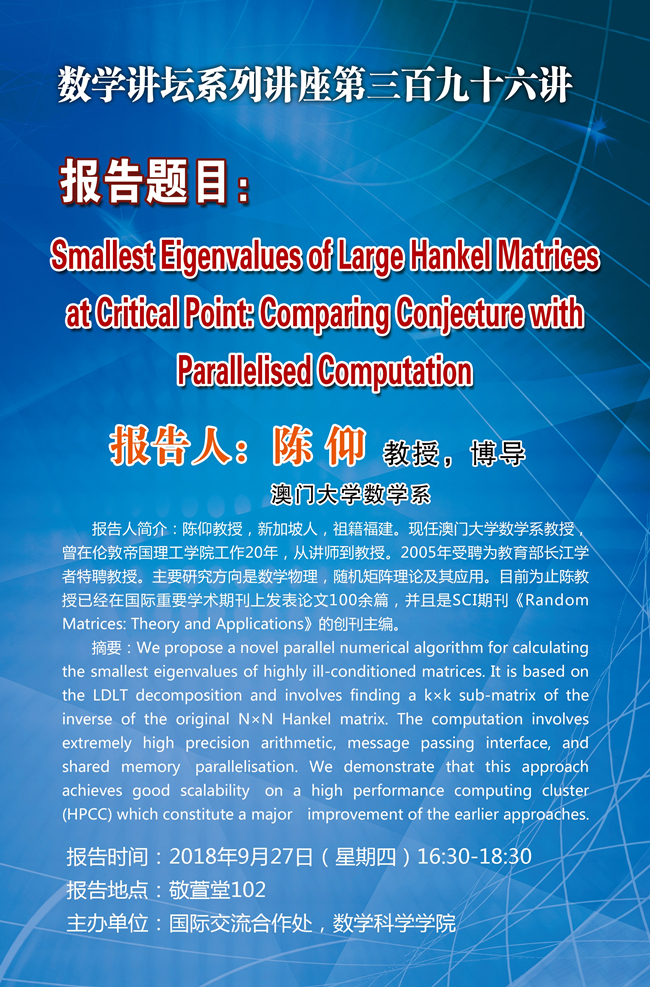 数学讲坛系列讲座第396讲