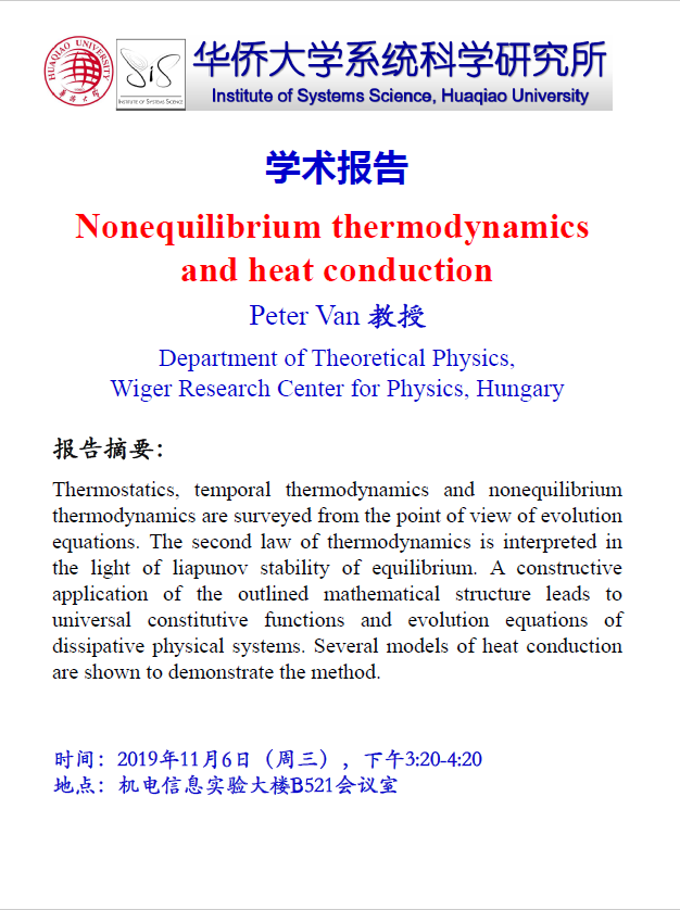 beat365唯一官网系统科学研究所学术报告《Nonequilibrium thermodynamics and heat conduction》
