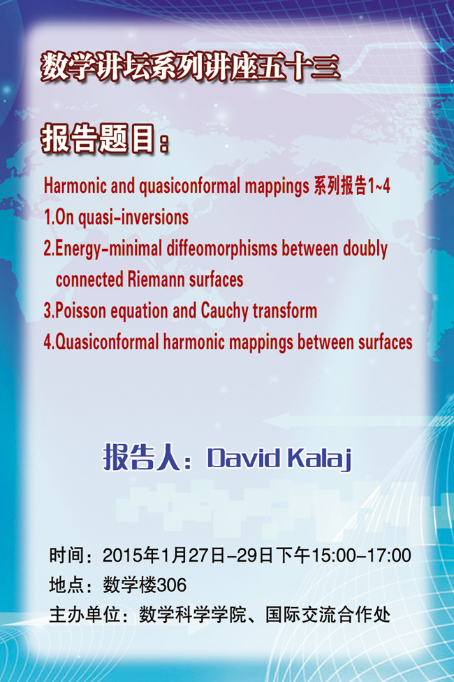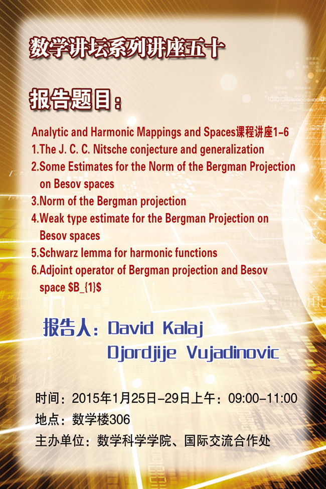 预告:数学讲坛系列讲座五十、五十一、五十二、五十三、五十四