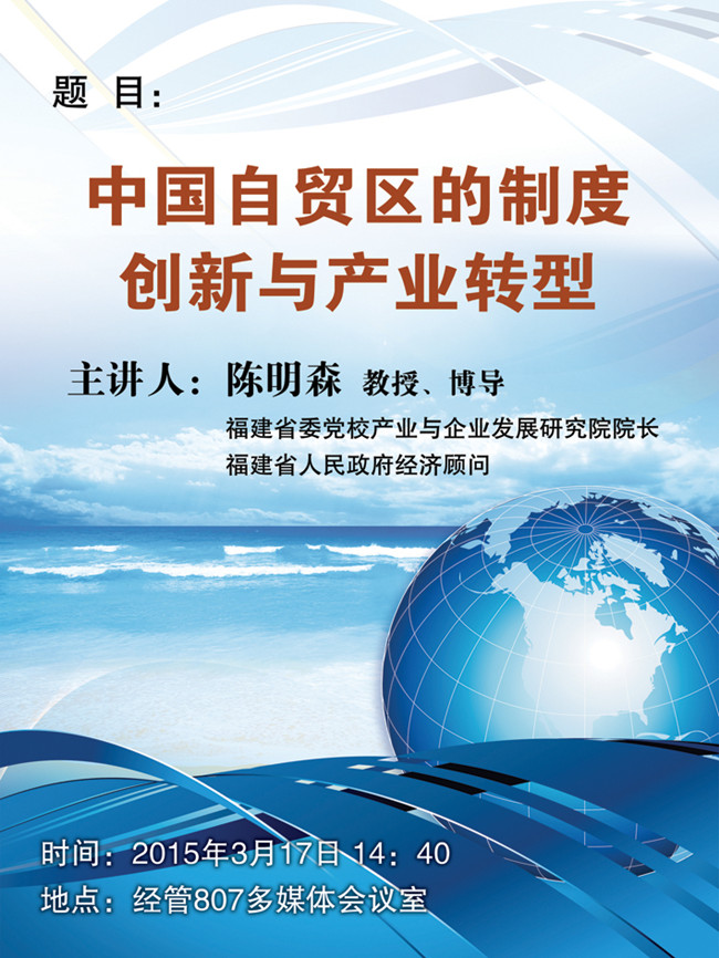 预告:福建省委党校产业与企业发展研究院院长陈明森《中国自贸区的制度创新与产业转型》